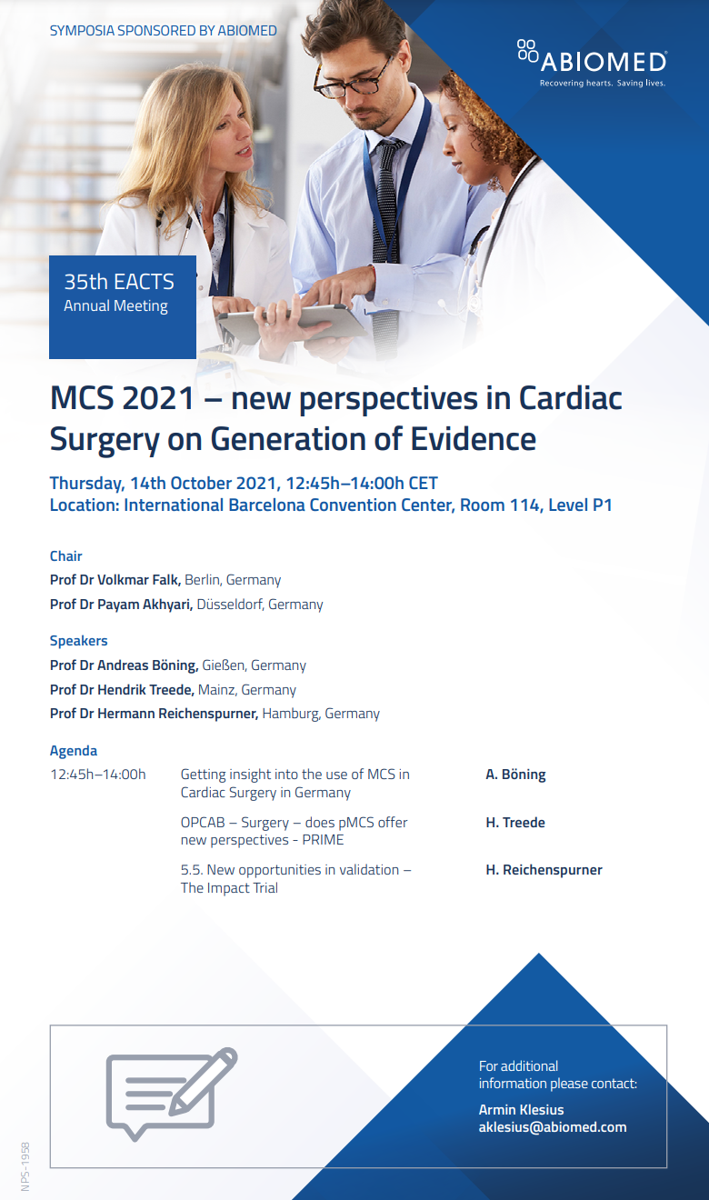 Desde Izasa Medical os invitamos a participar en el Simposio organizado por Abiomed dentro del 35º EACTS Annual meeting, el próximo 14 de Octubre.